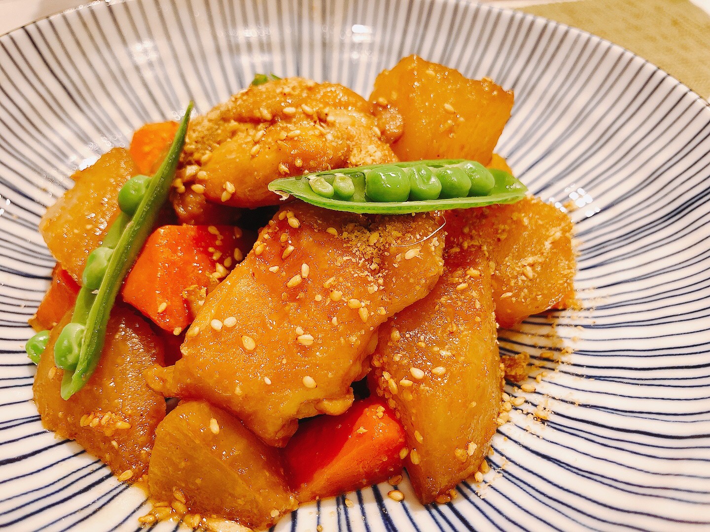 甘辛い味付けに、ごまと生姜の風味が最高に美味しくてごはんがもりもり進む煮物です。