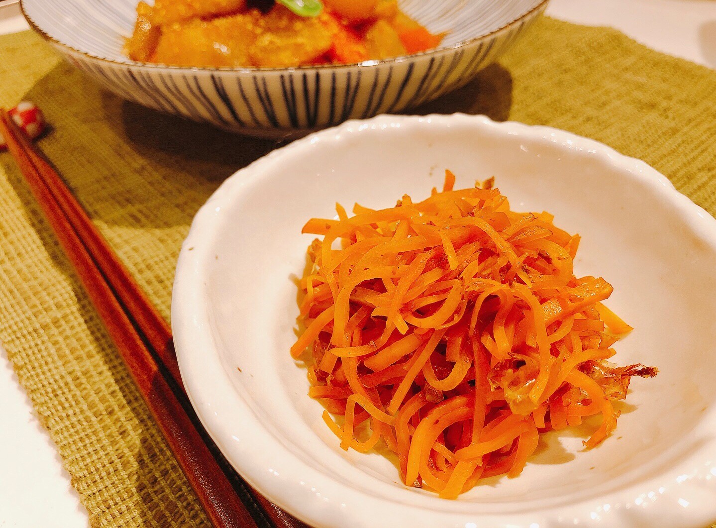 とってもシンプルな材料ながら、人参の甘さと鰹節の旨味が合わさって美味しい一品。